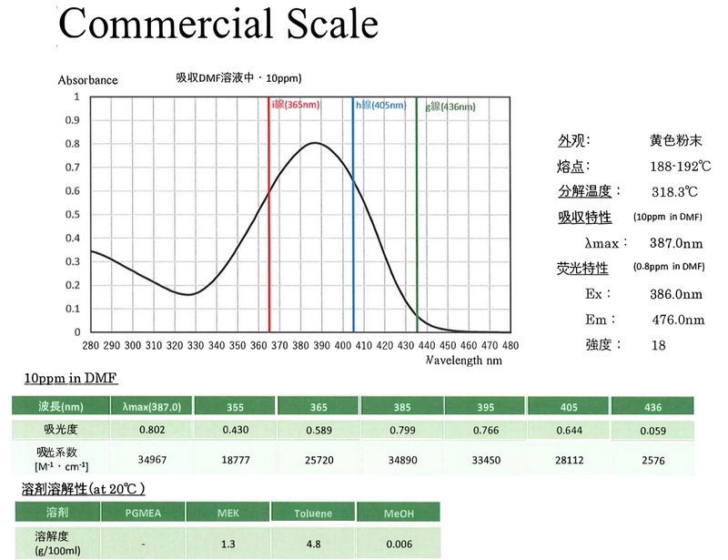 | Product Name | Pyrazoline-based Sensitizers (Synonyms: Pyrazoline Photosensitizer / UV-LED Curing Synergist) | ||